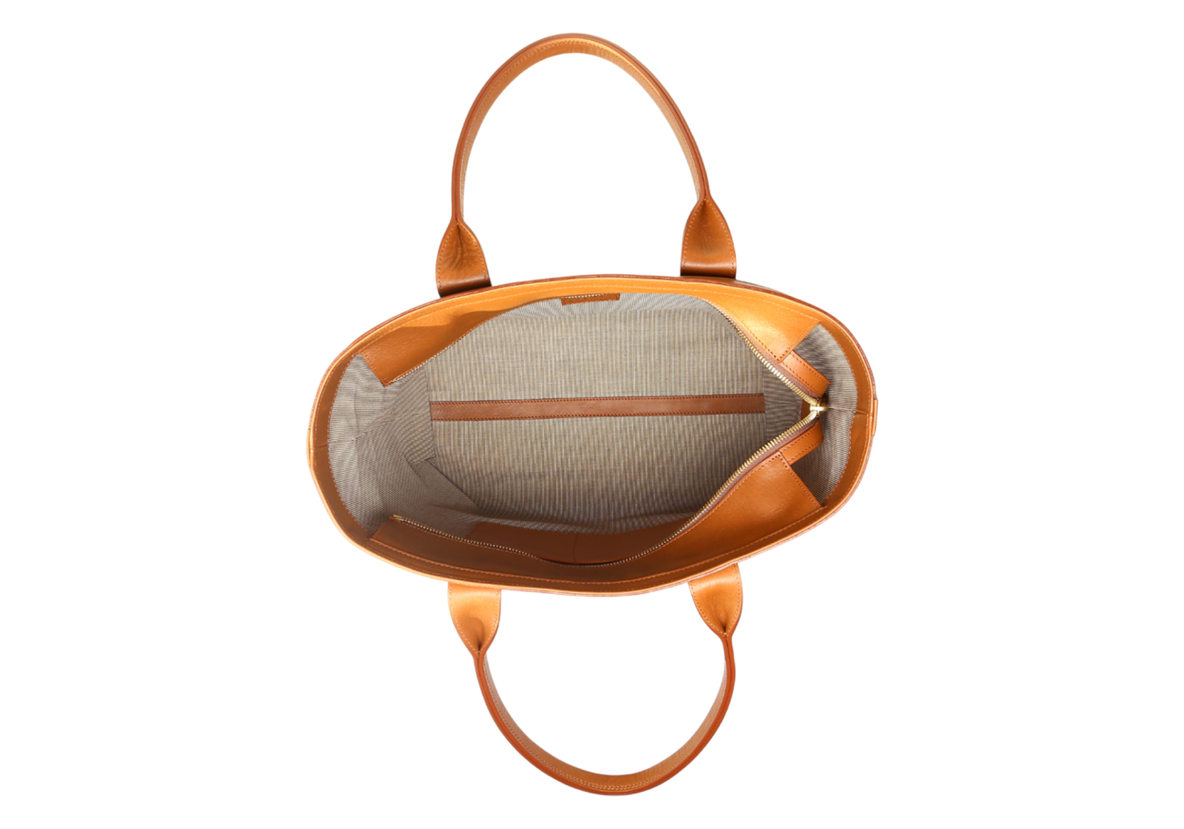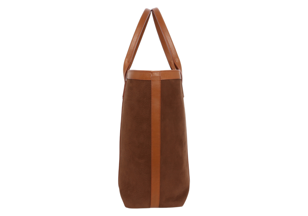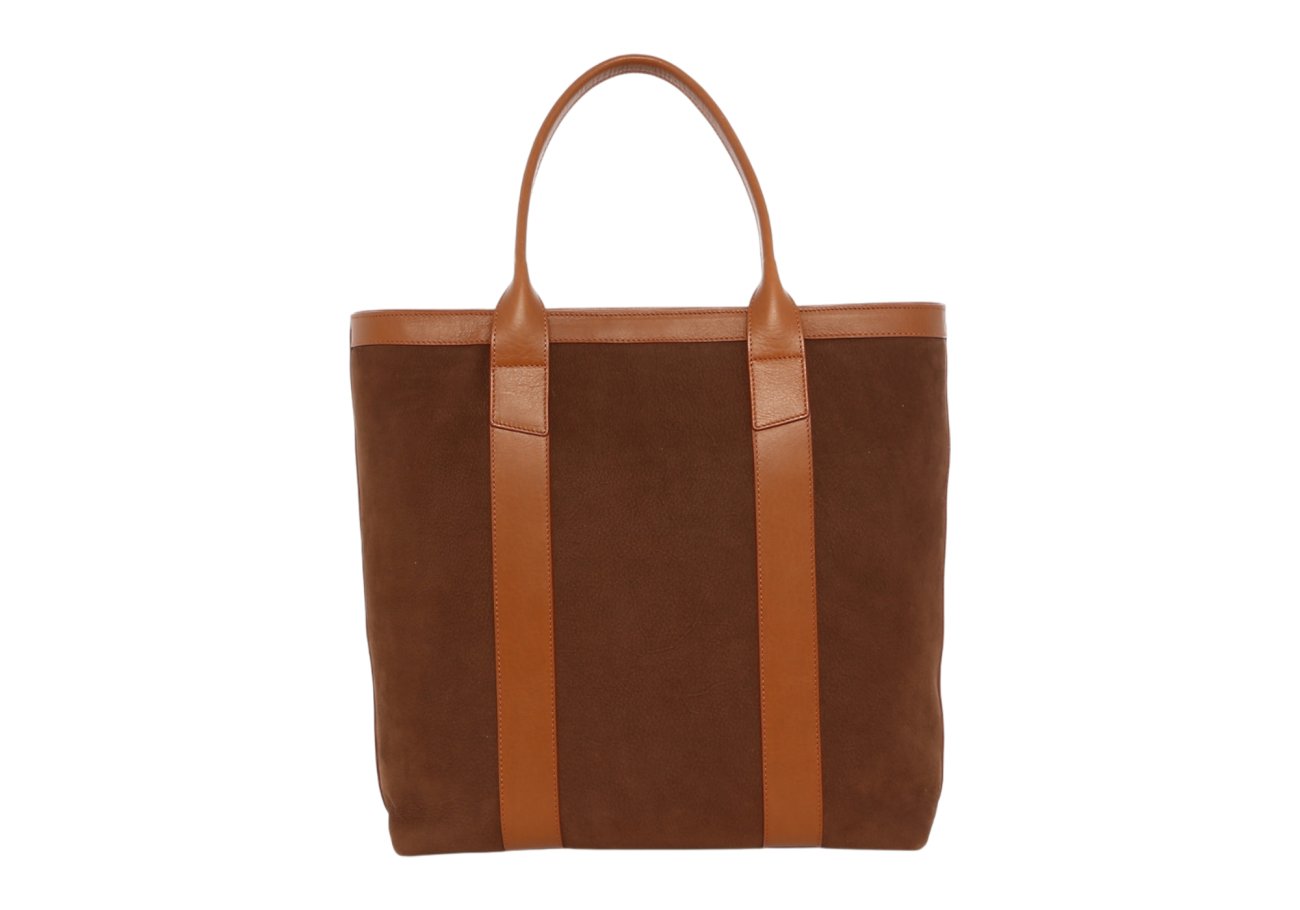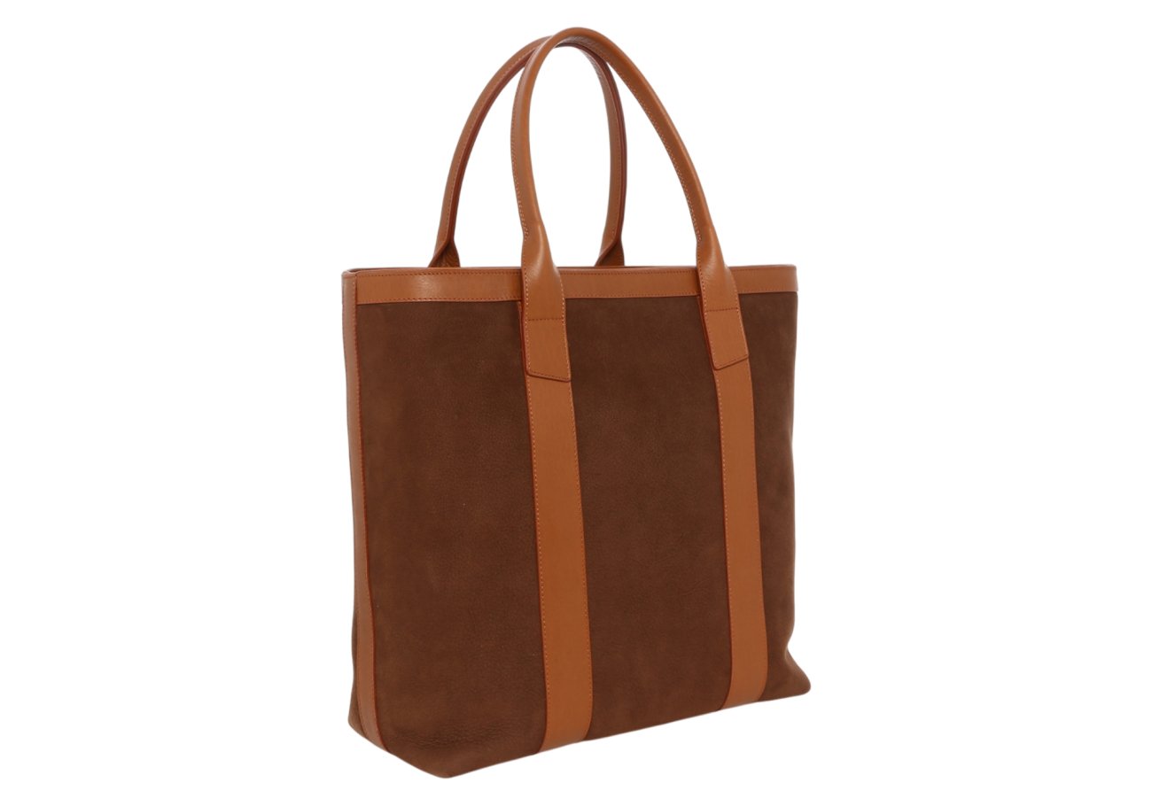 Tall Tote - Chocolate/Cognac- Nubuck - Tumbled Leather - Zipper Closure - Linen Tweed