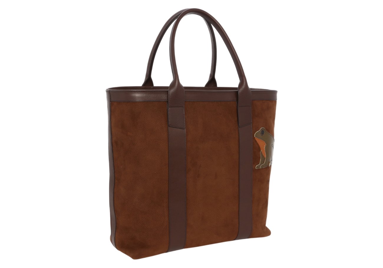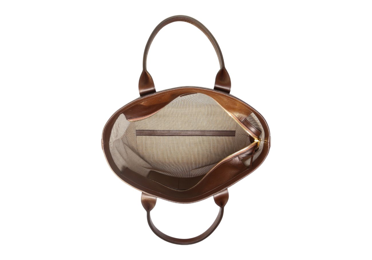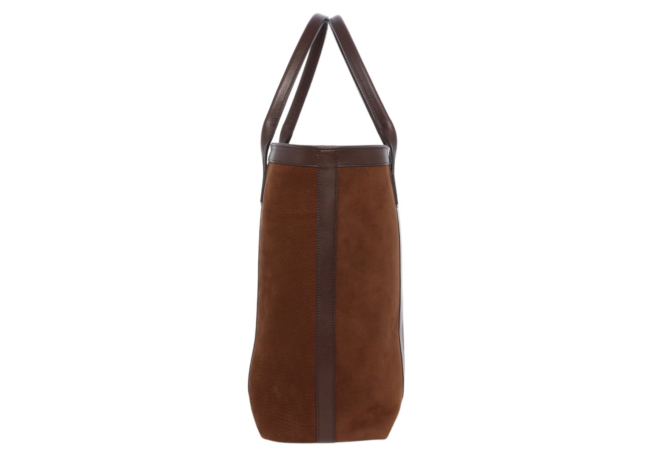 Tall Tote - Chocolate/Chocolate- Nubuck - Tumbled Leather - Zipper Closure - Linen Tweed