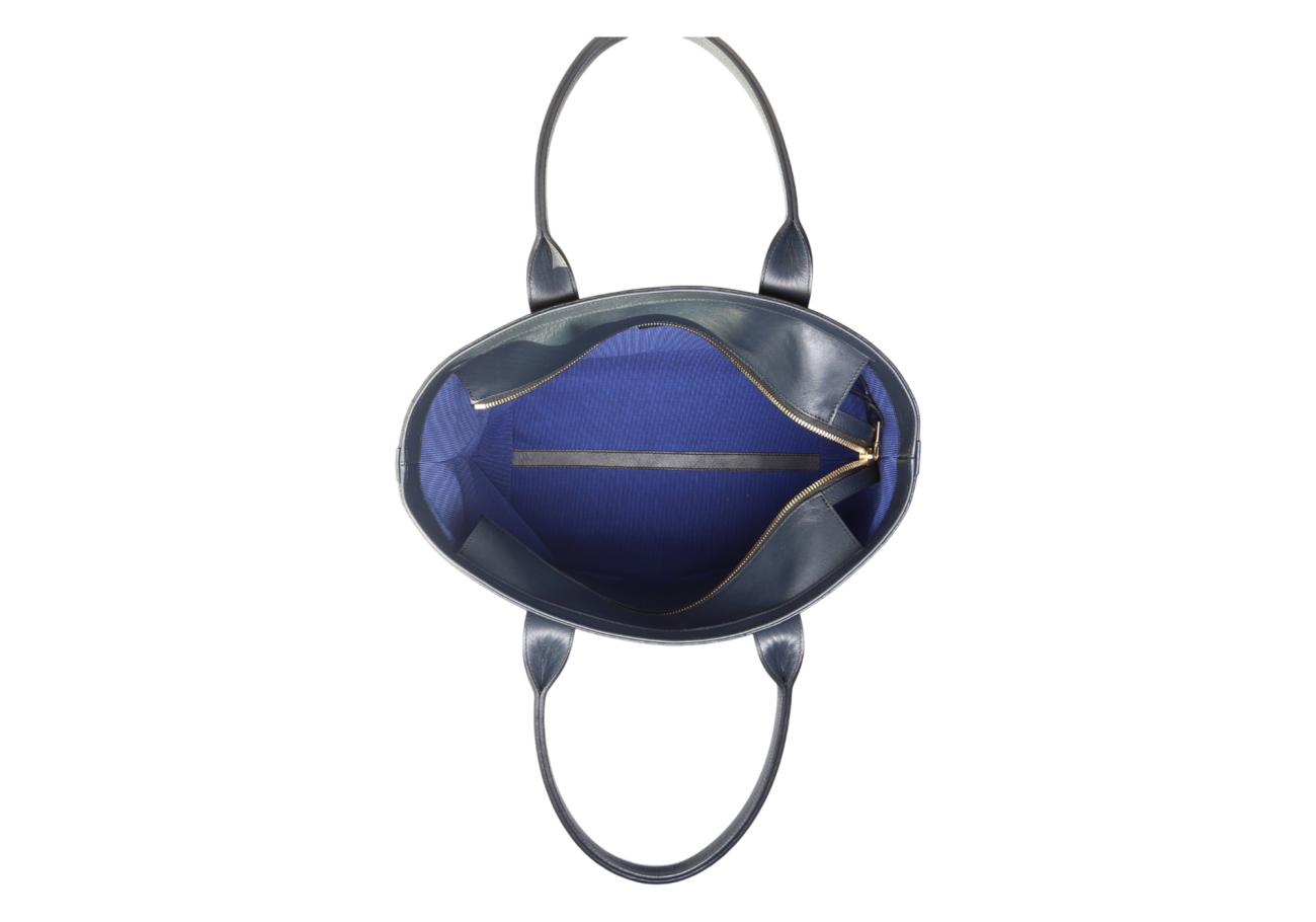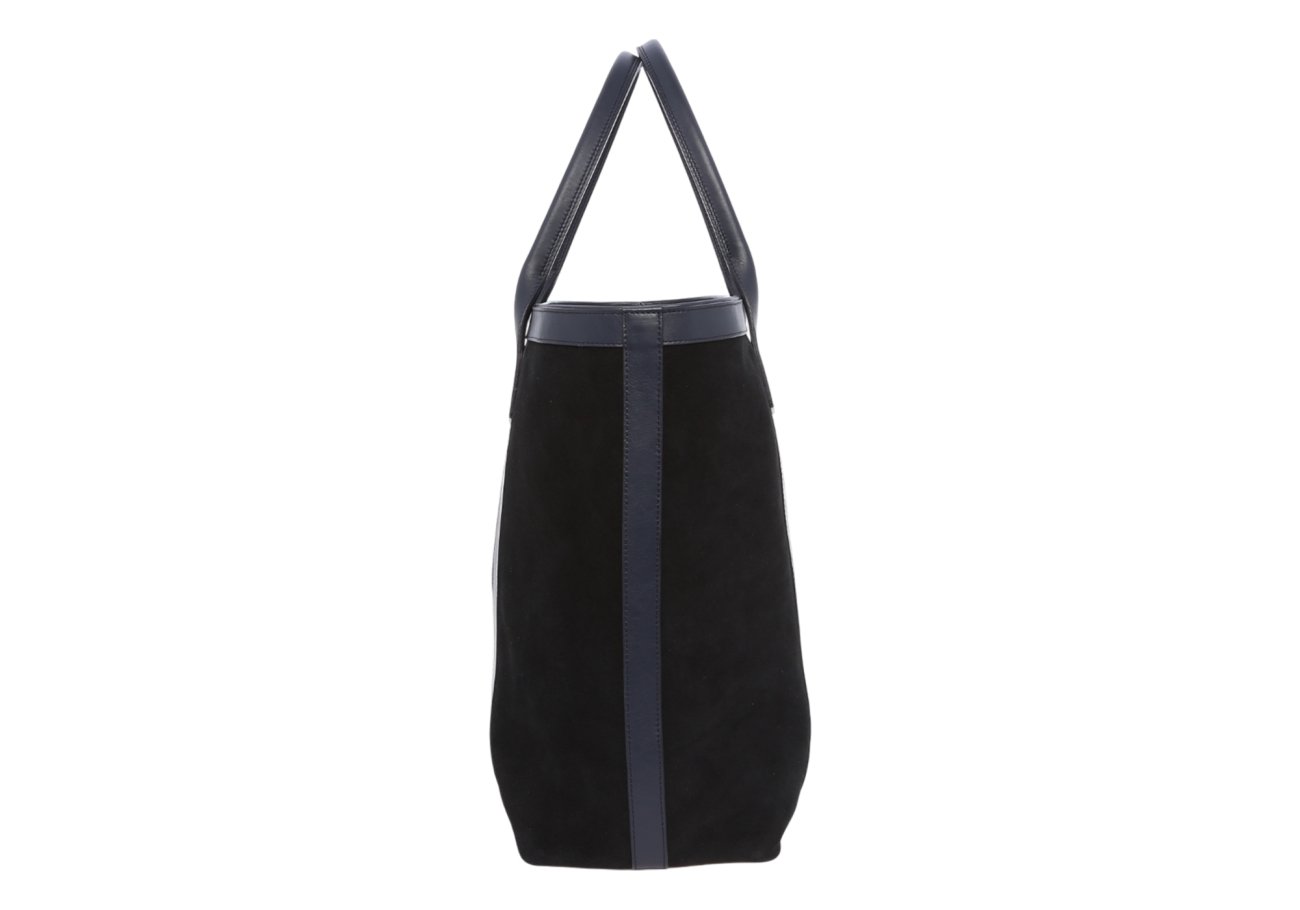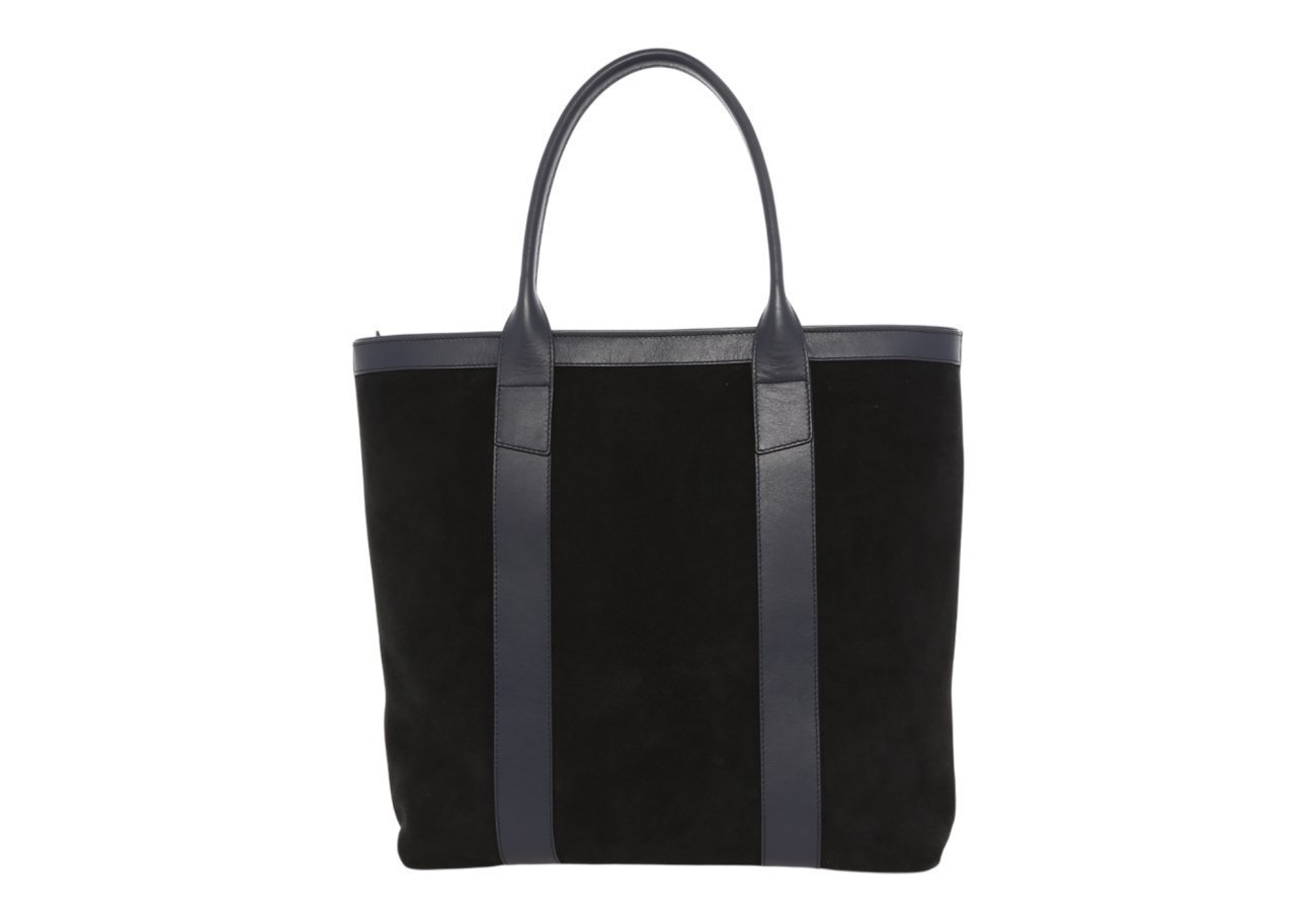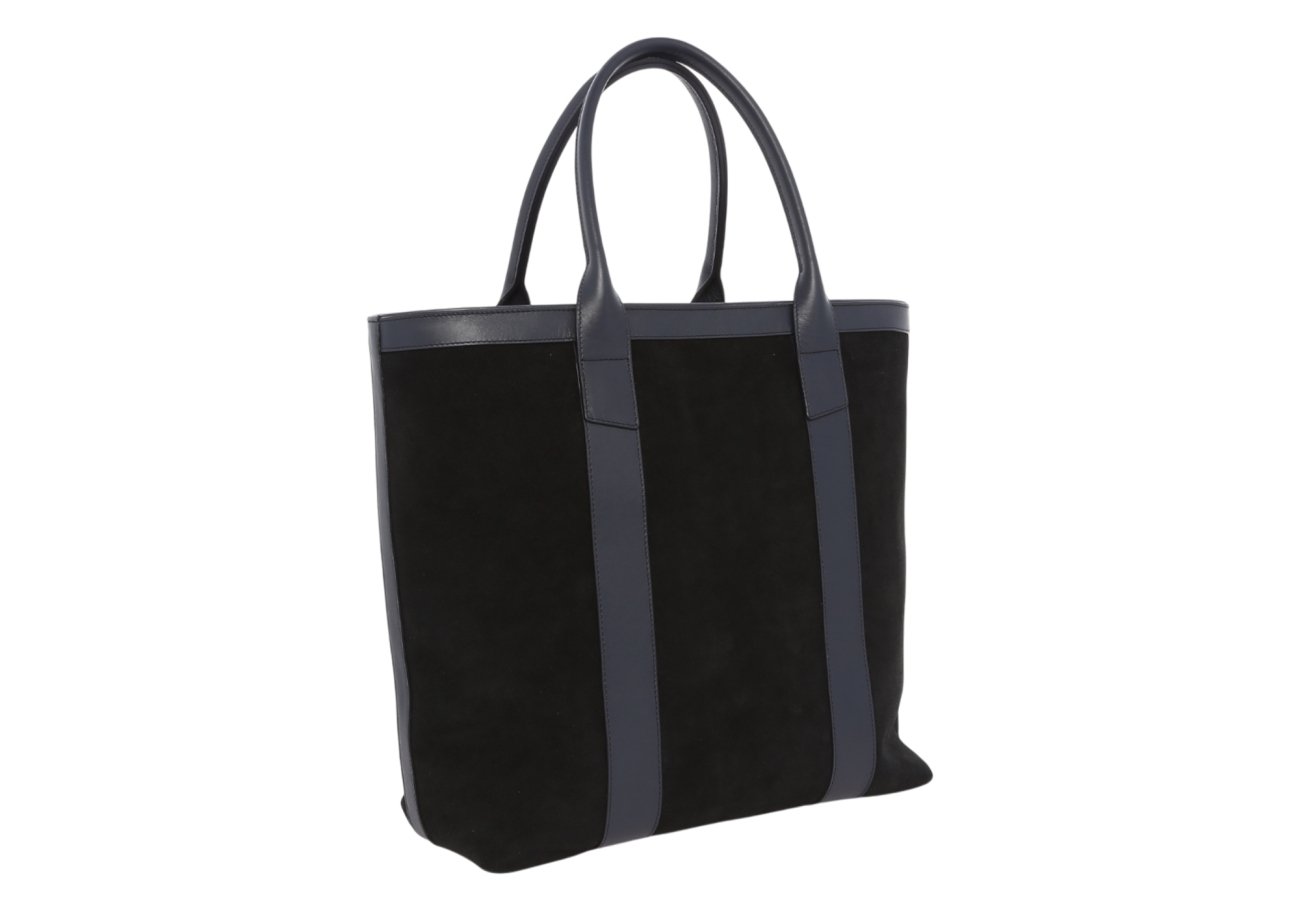 Tall Tote - Black/Navy - Suede - Tumbled Leather - Zipper Closure - Mediterranean Sunbrella