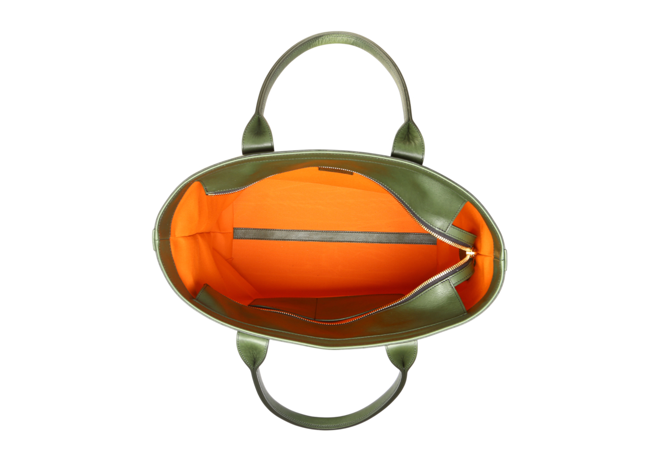 Tall Tote - Elm Green/Green - Suede - Tumbled Leather - Zipper Closure - Tuscan Sunbrella