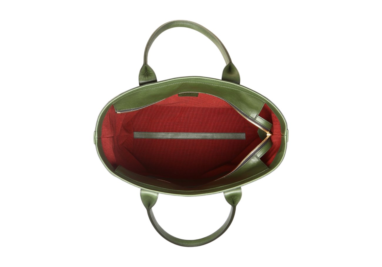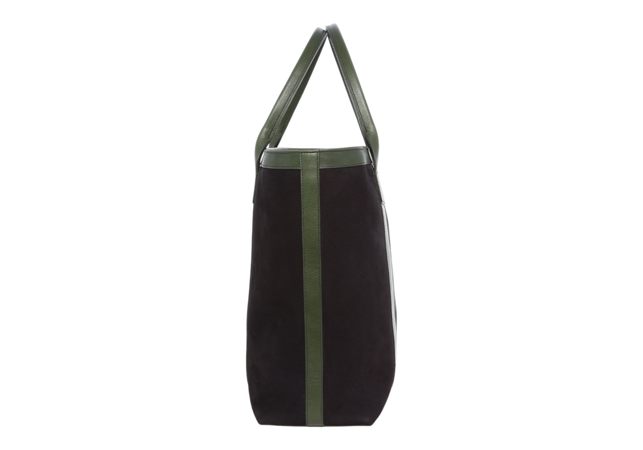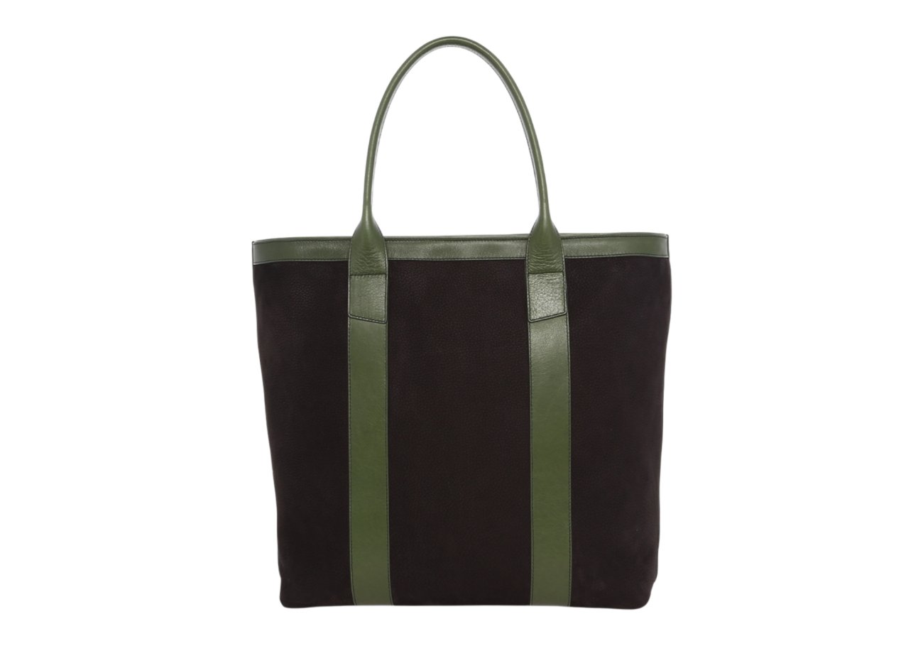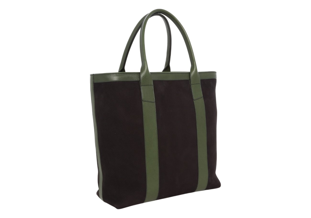 Tall Tote - Black/Green - Nubuck - Tumbled Leather - Zipper Closure - Dubonnet Tweed Sunbrella