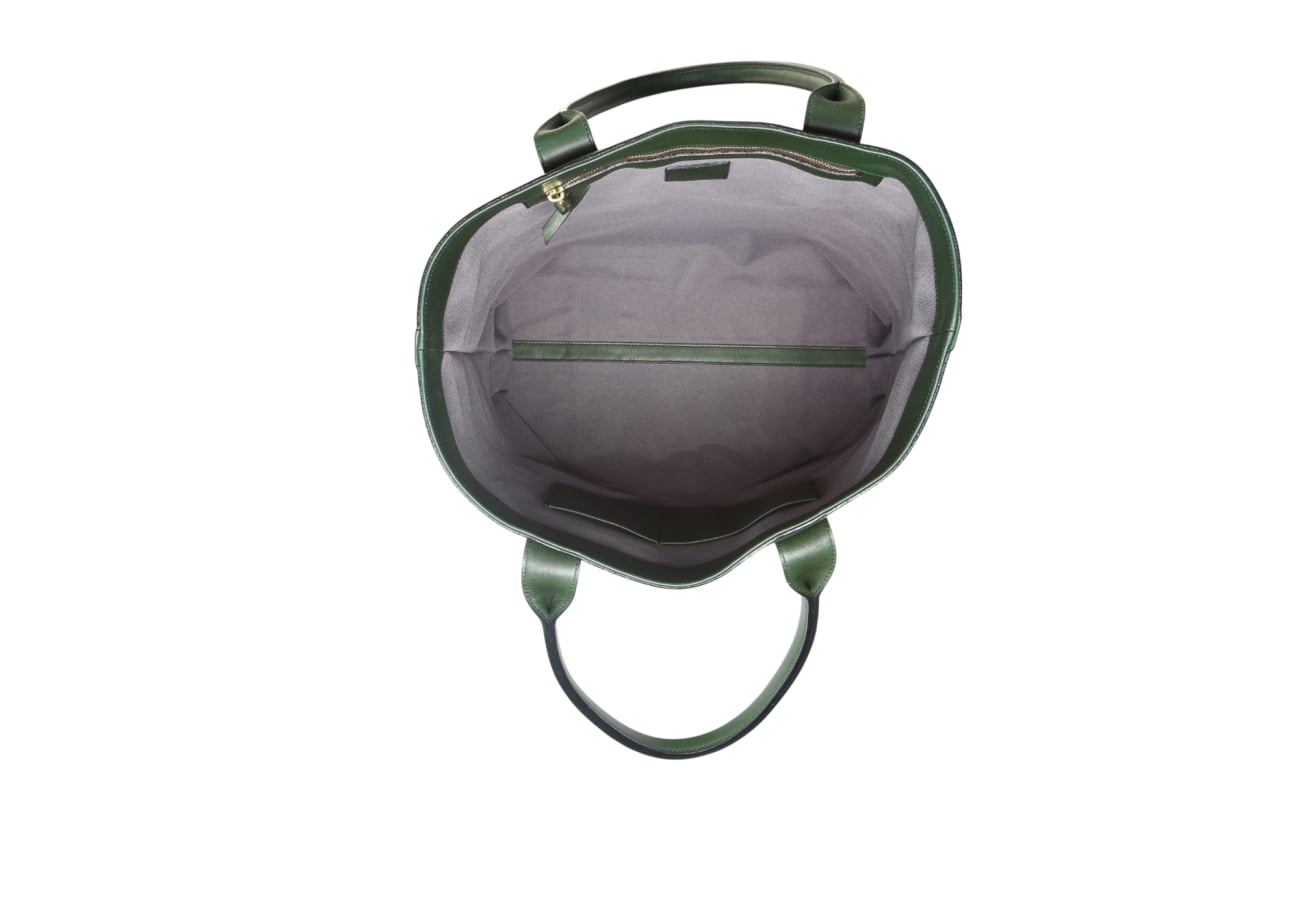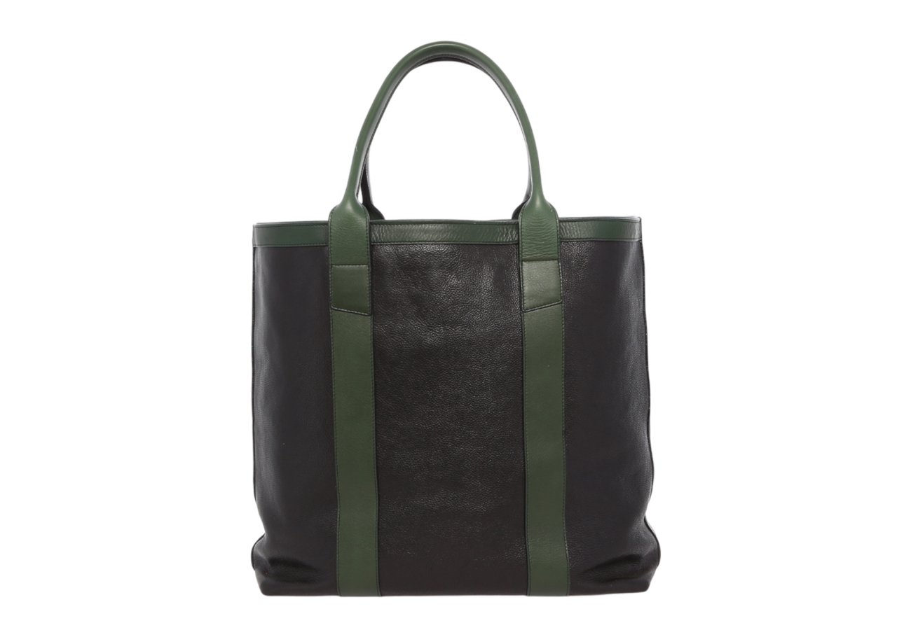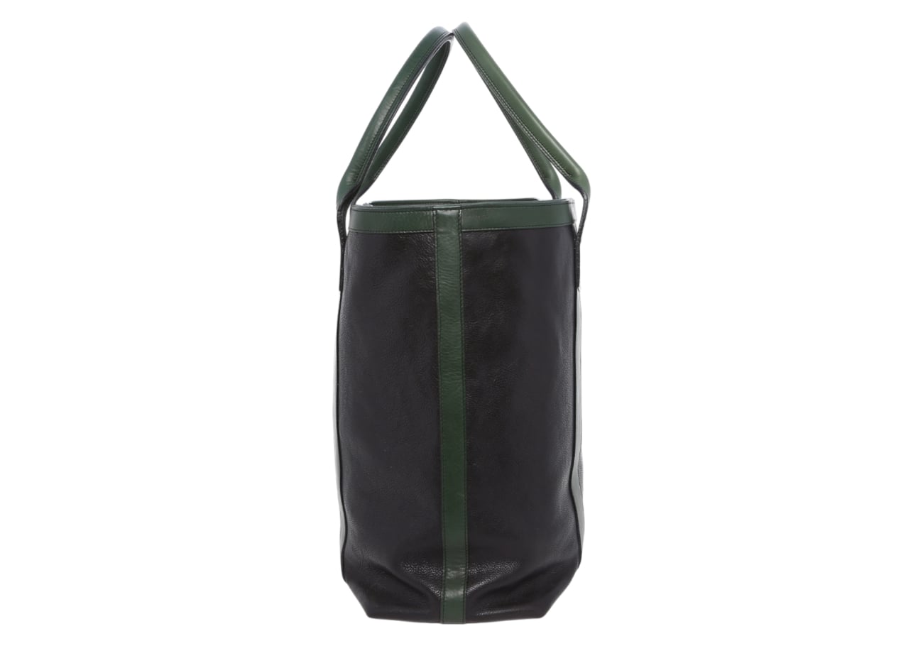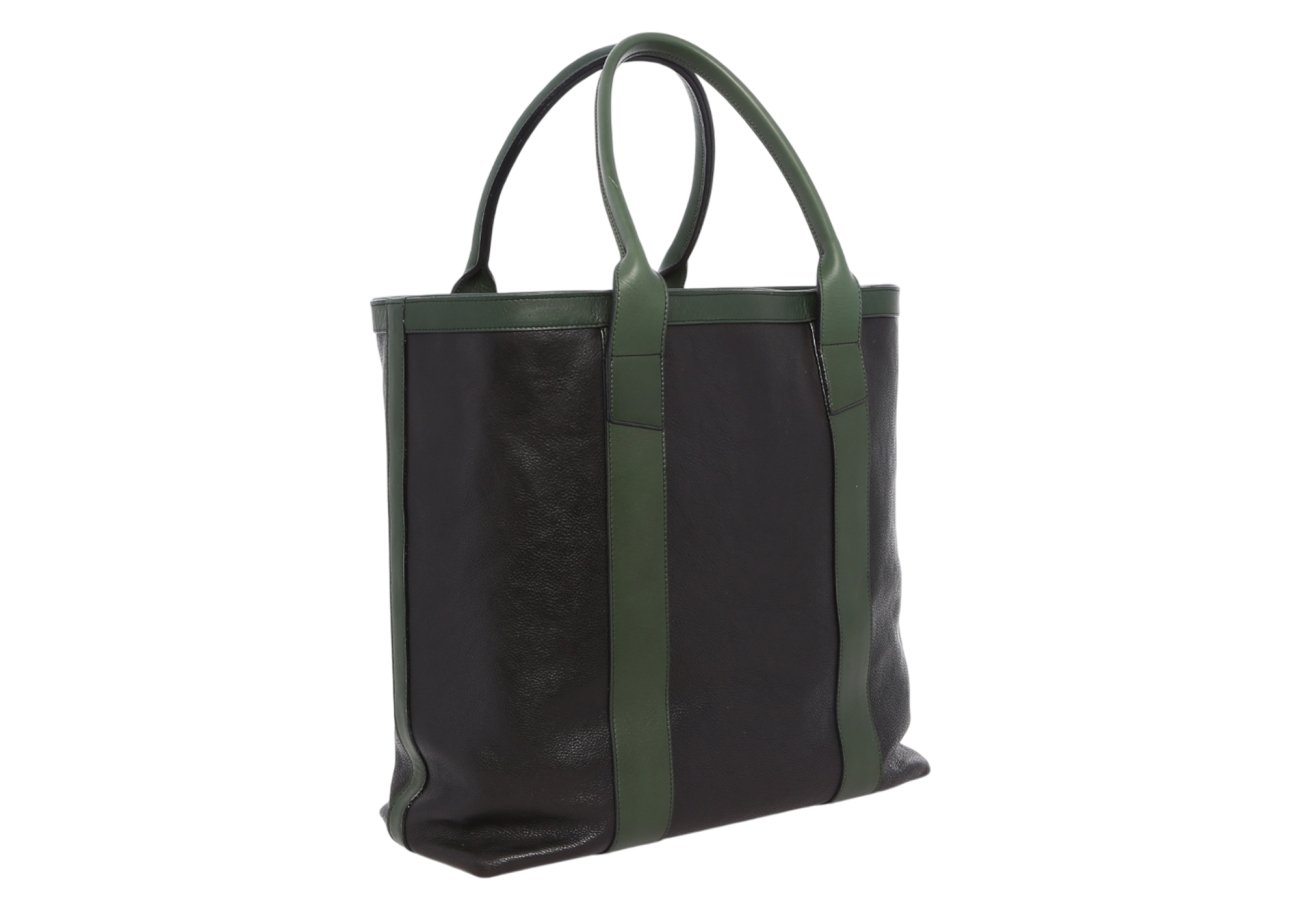 Tall Tote - Black/Green - Pebbled Leather - Zipper Closure - Grey Cordura