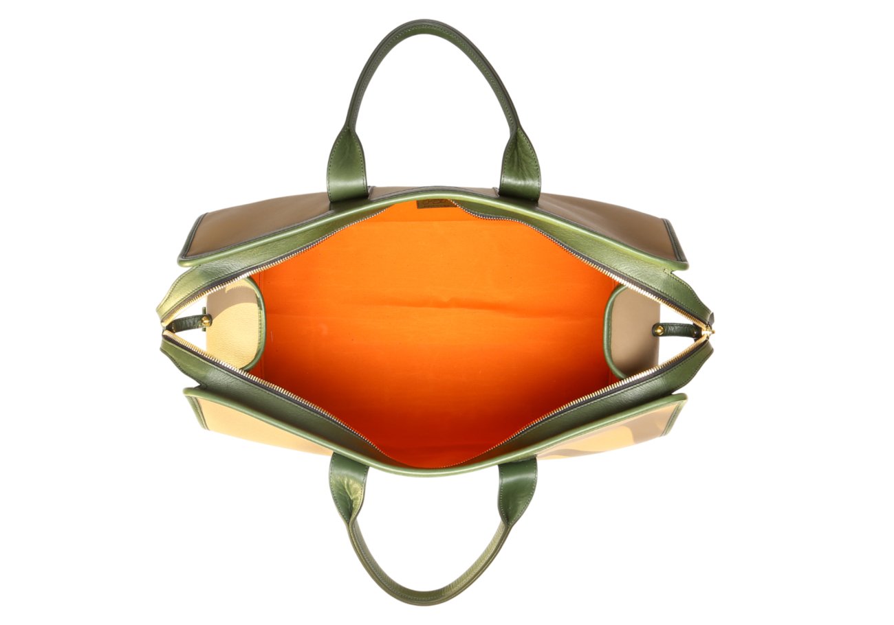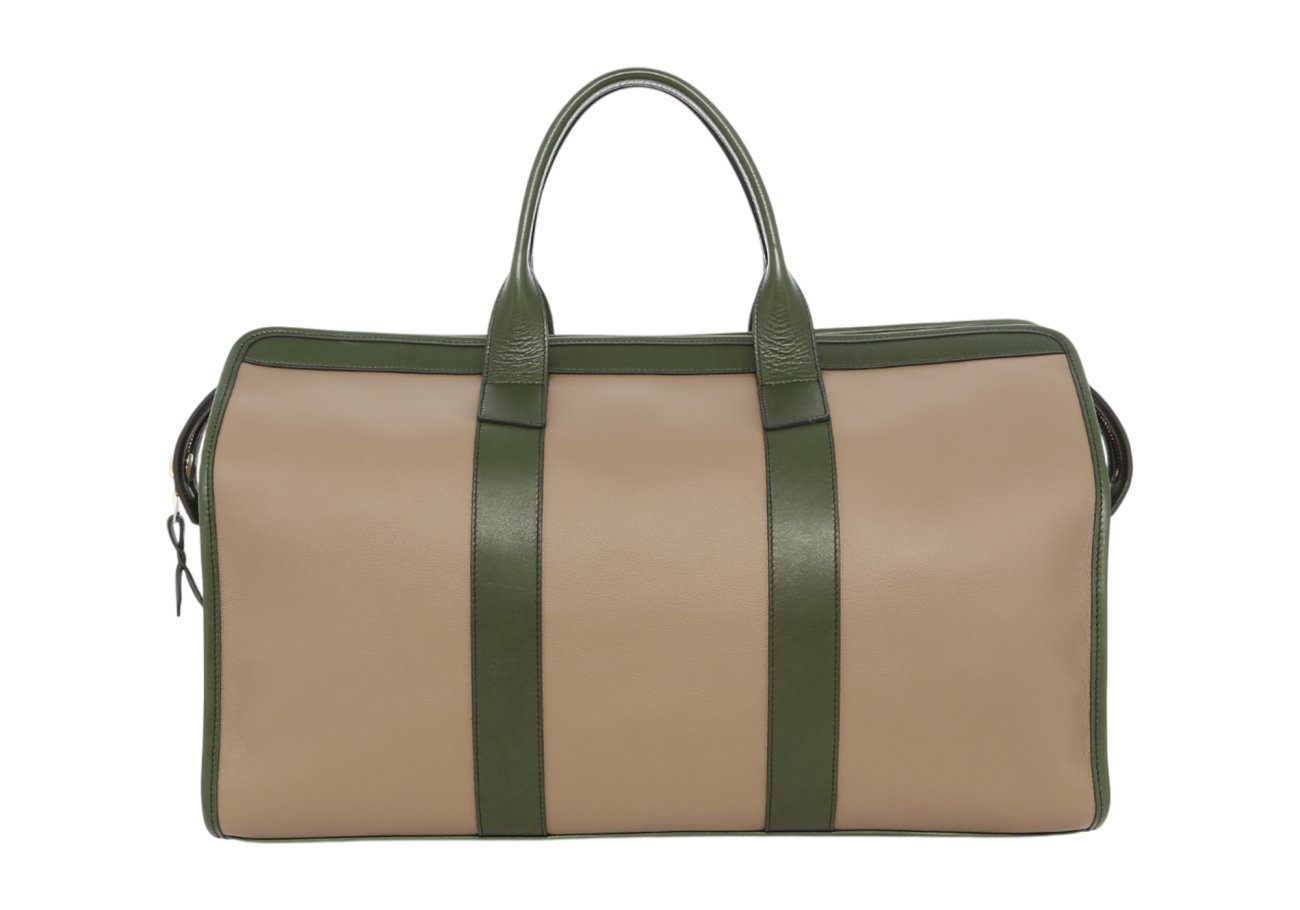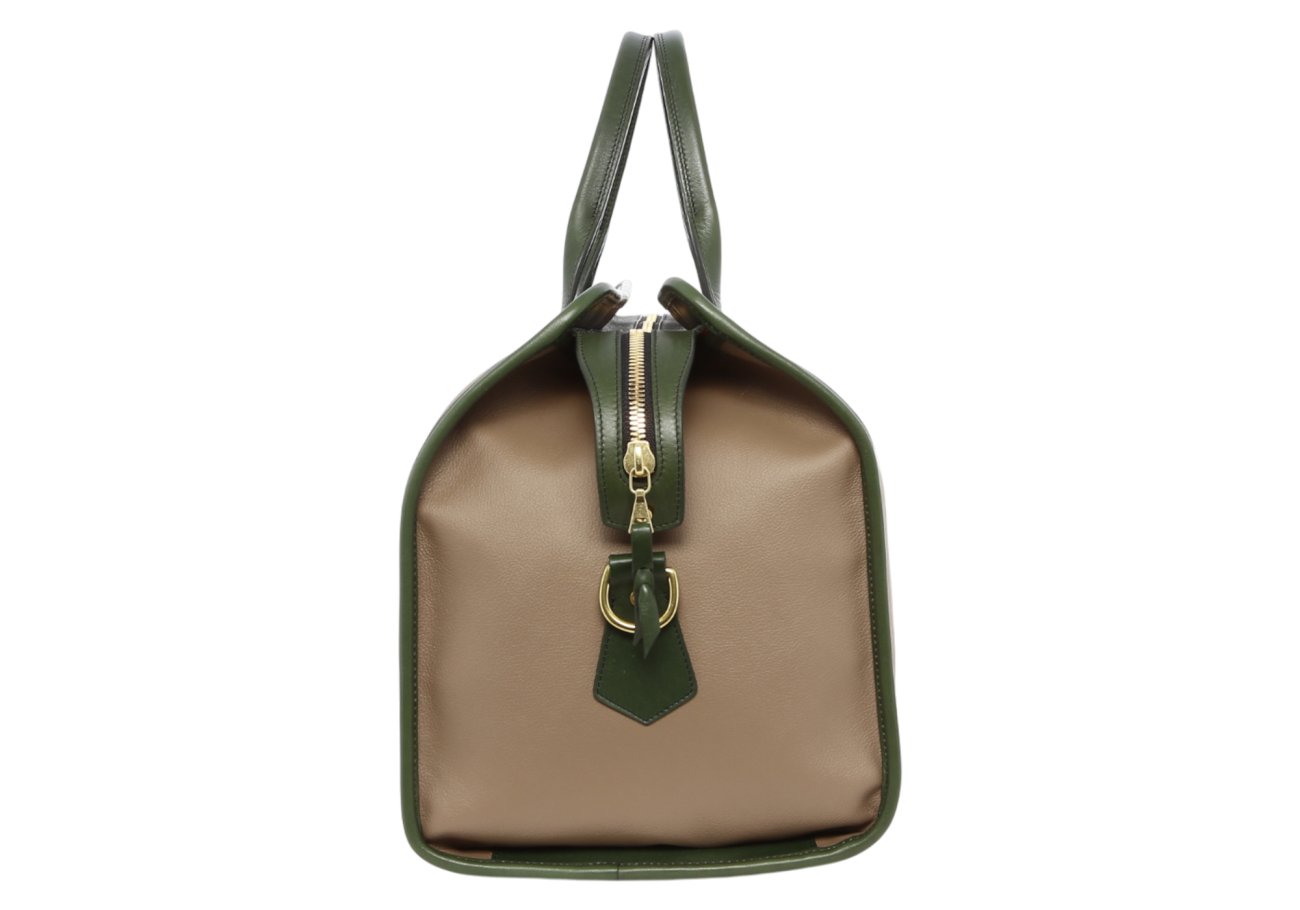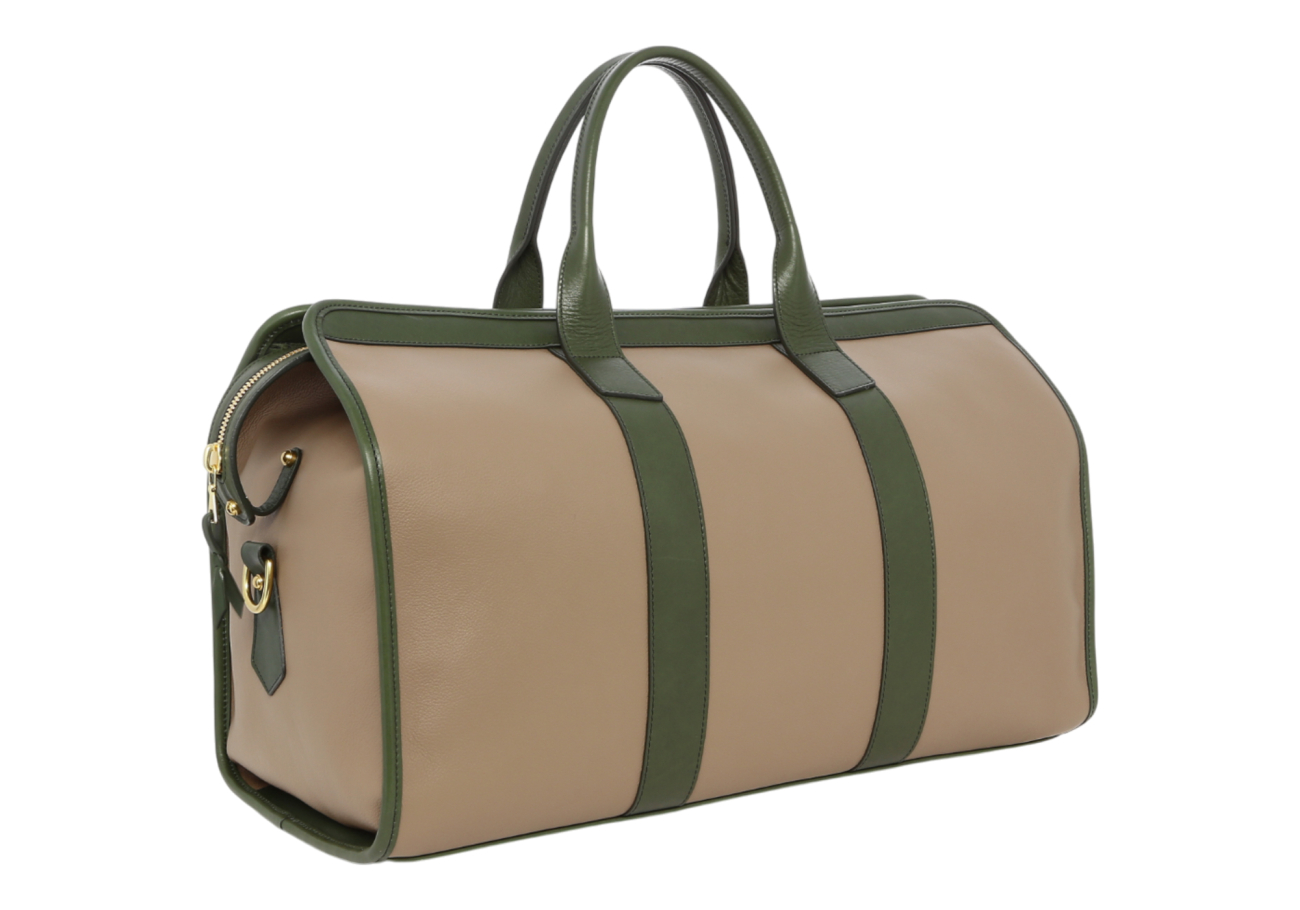 Signature Travel Duffle - Simple Taupe/Olive - Smooth Pebbled Leather - Tuscan Sunbrella