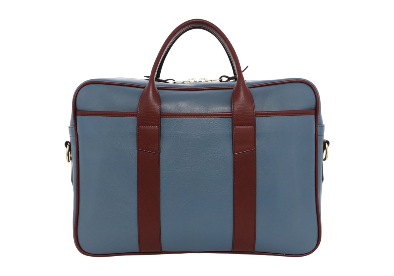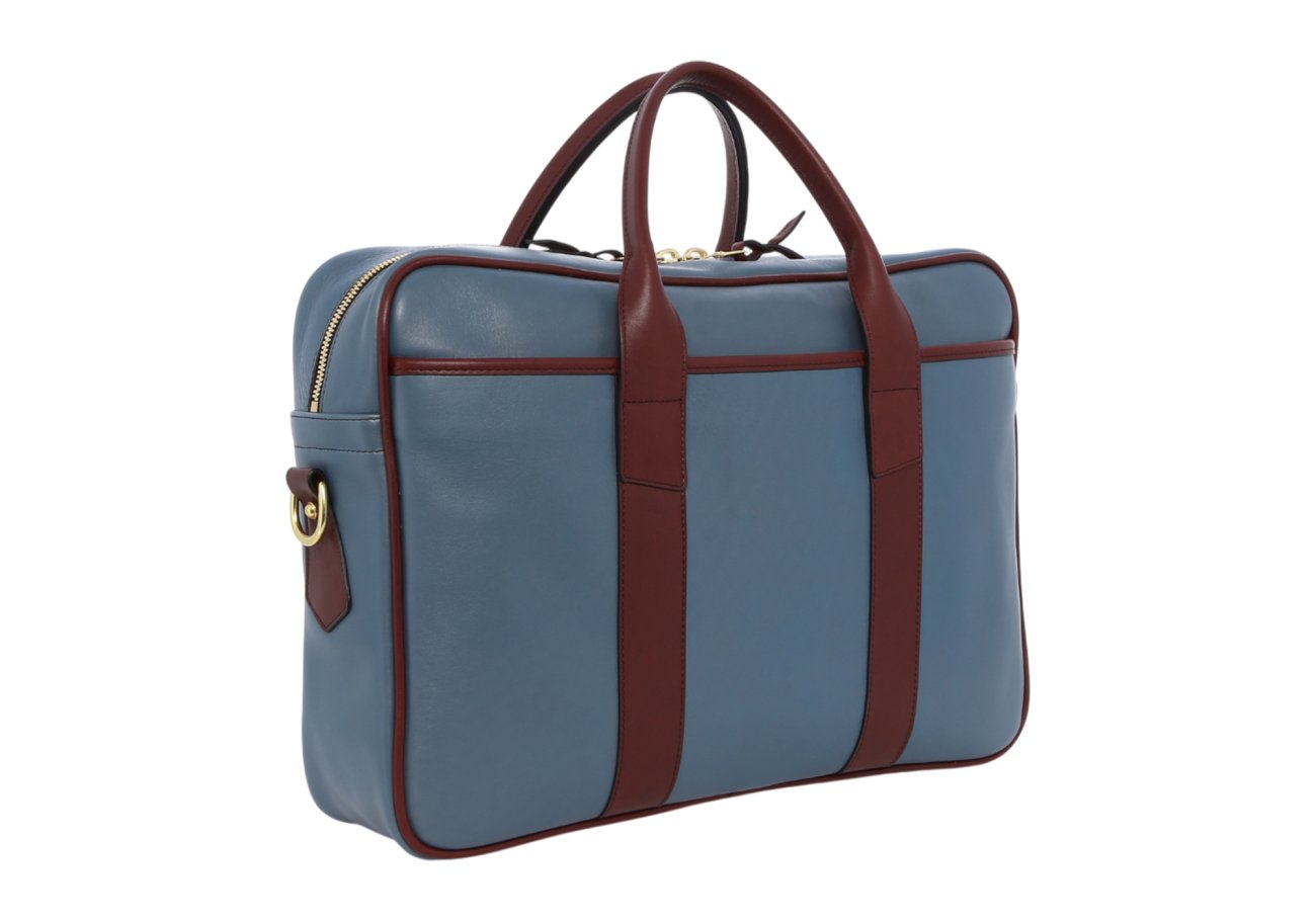 Commuter Briefcase - Bluestone/Burgundy - Tumbled Leather