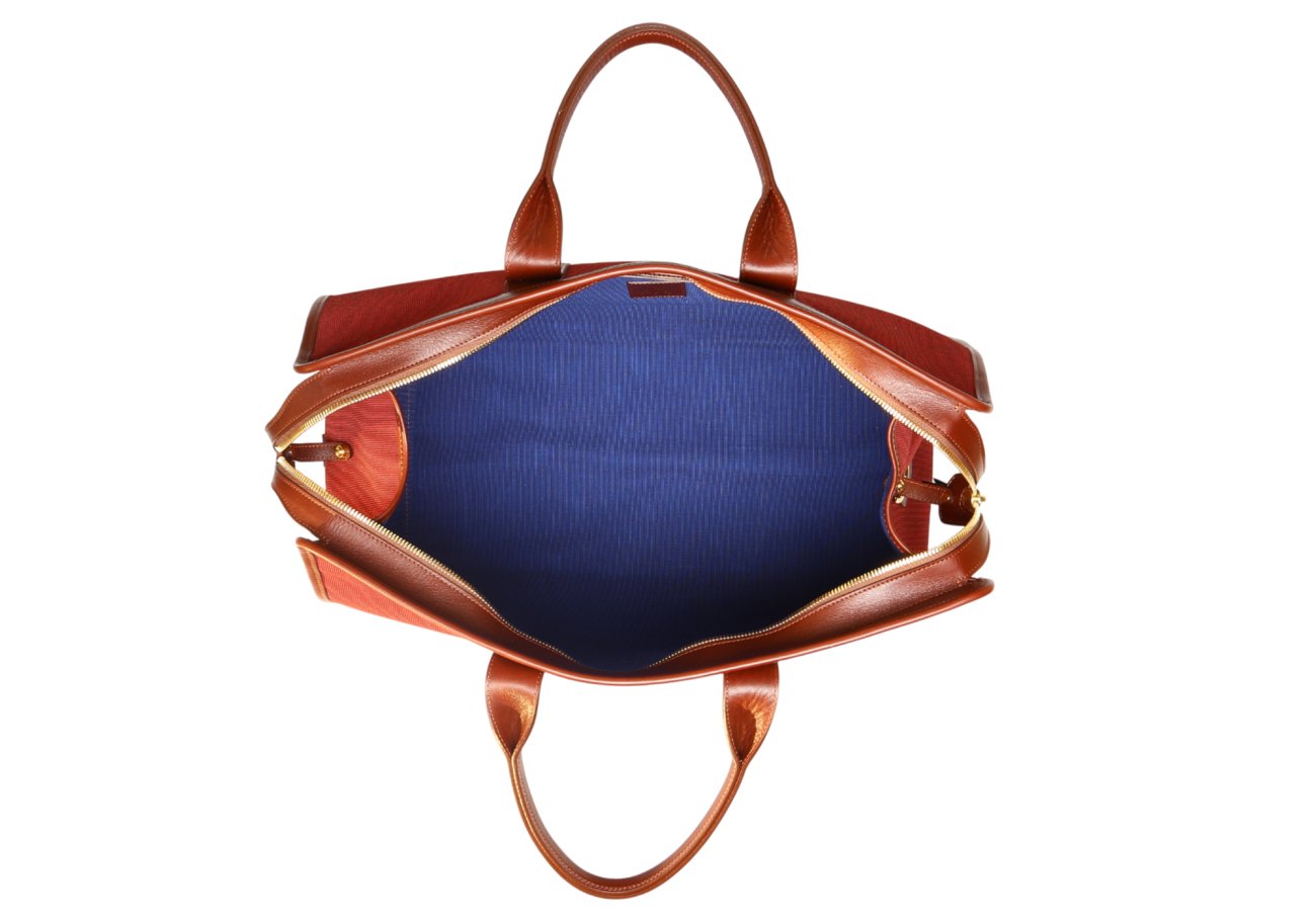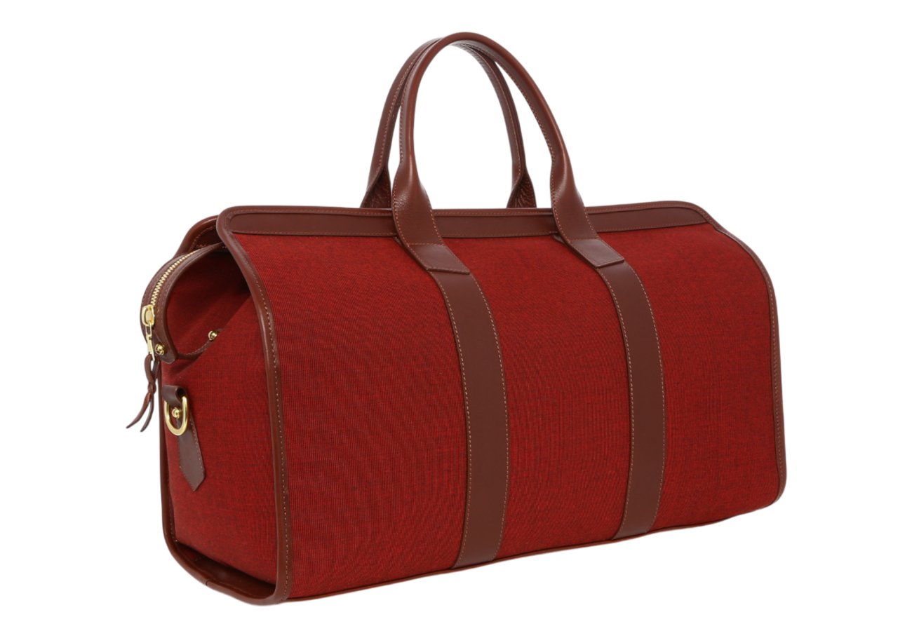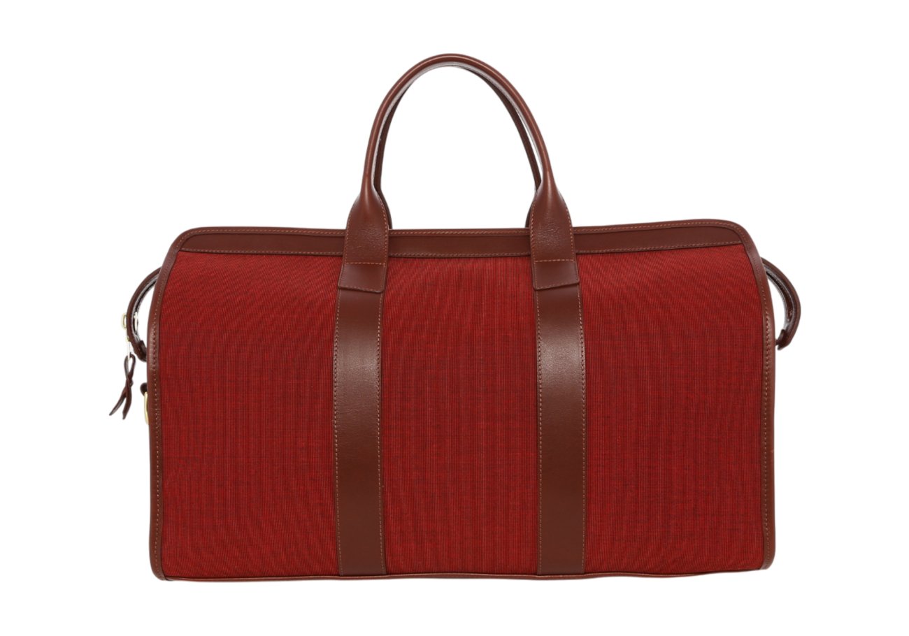 Signature Travel Duffle - Dubonnet Tweed/Chestnut - Sunbrella - Tumbled Leather - Mediterranean Blue Sunbrella