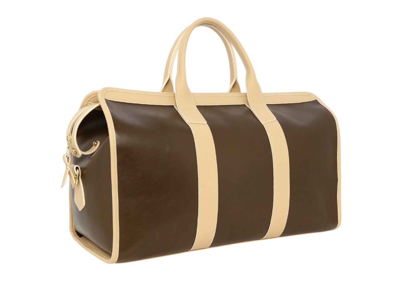Signature Travel Duffle - Olive/Warm Sand - Tumbled Leather - Charcoal Sunbrella