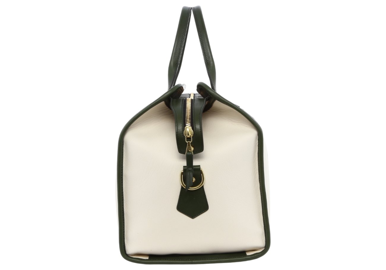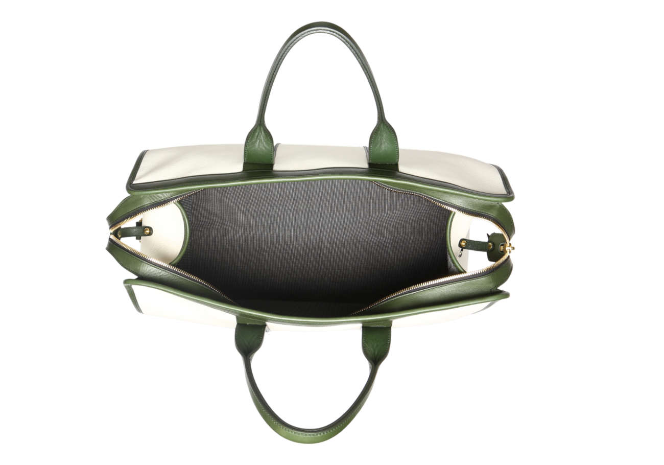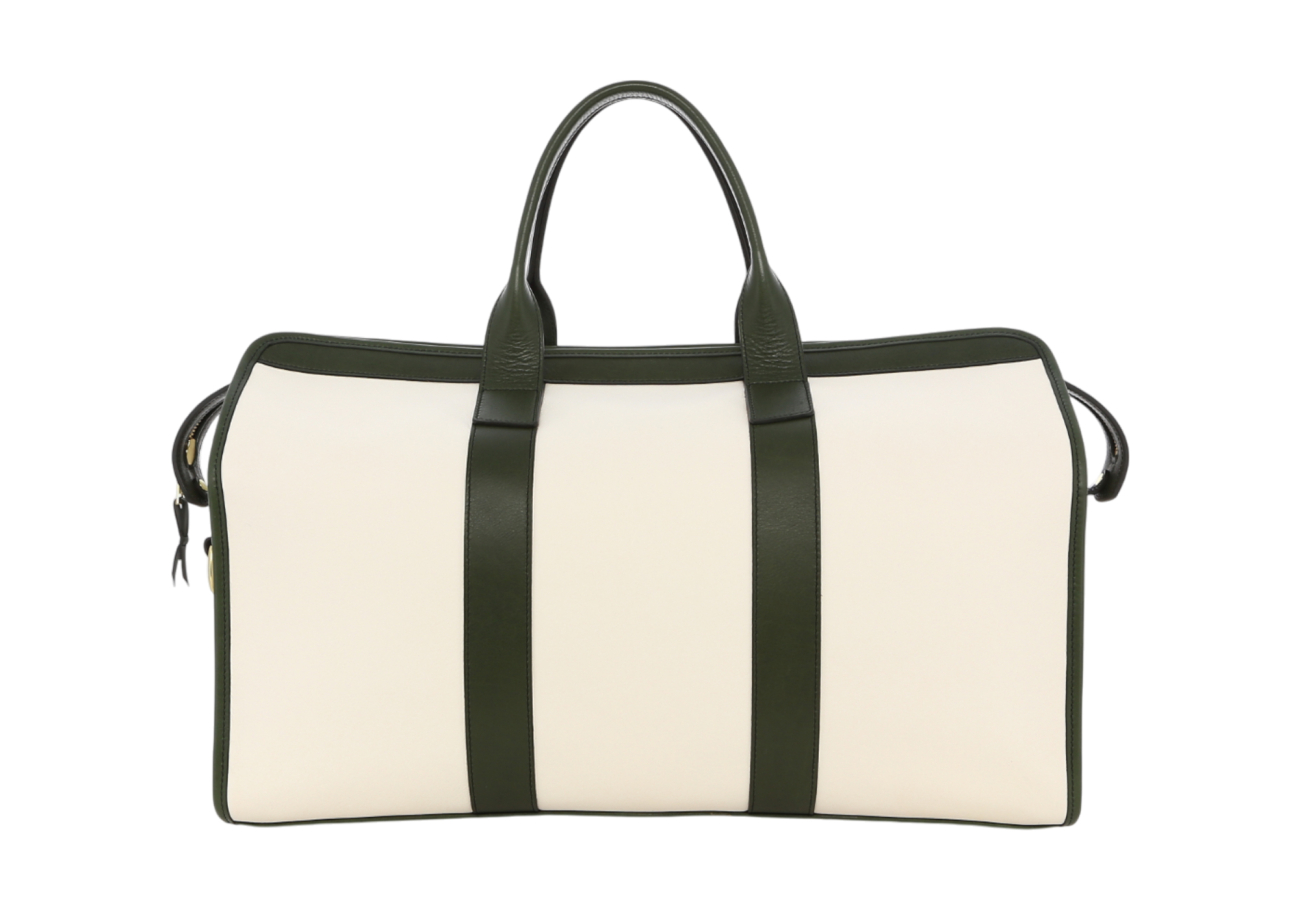 Signature Travel Duffle - White/Green - Smooth Leather - Charcoal Sunbrella