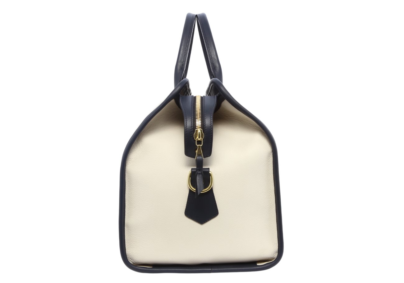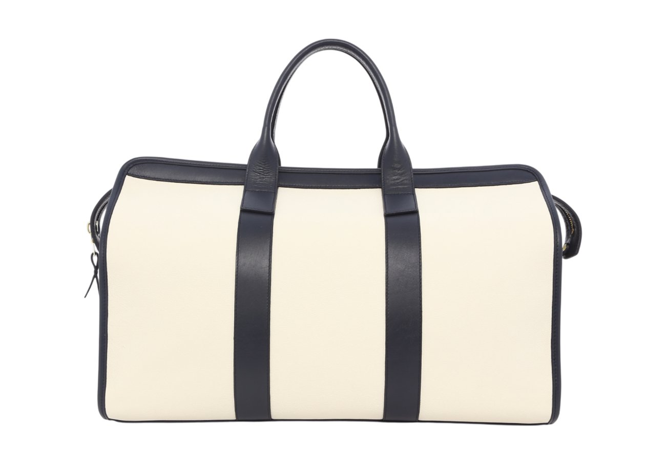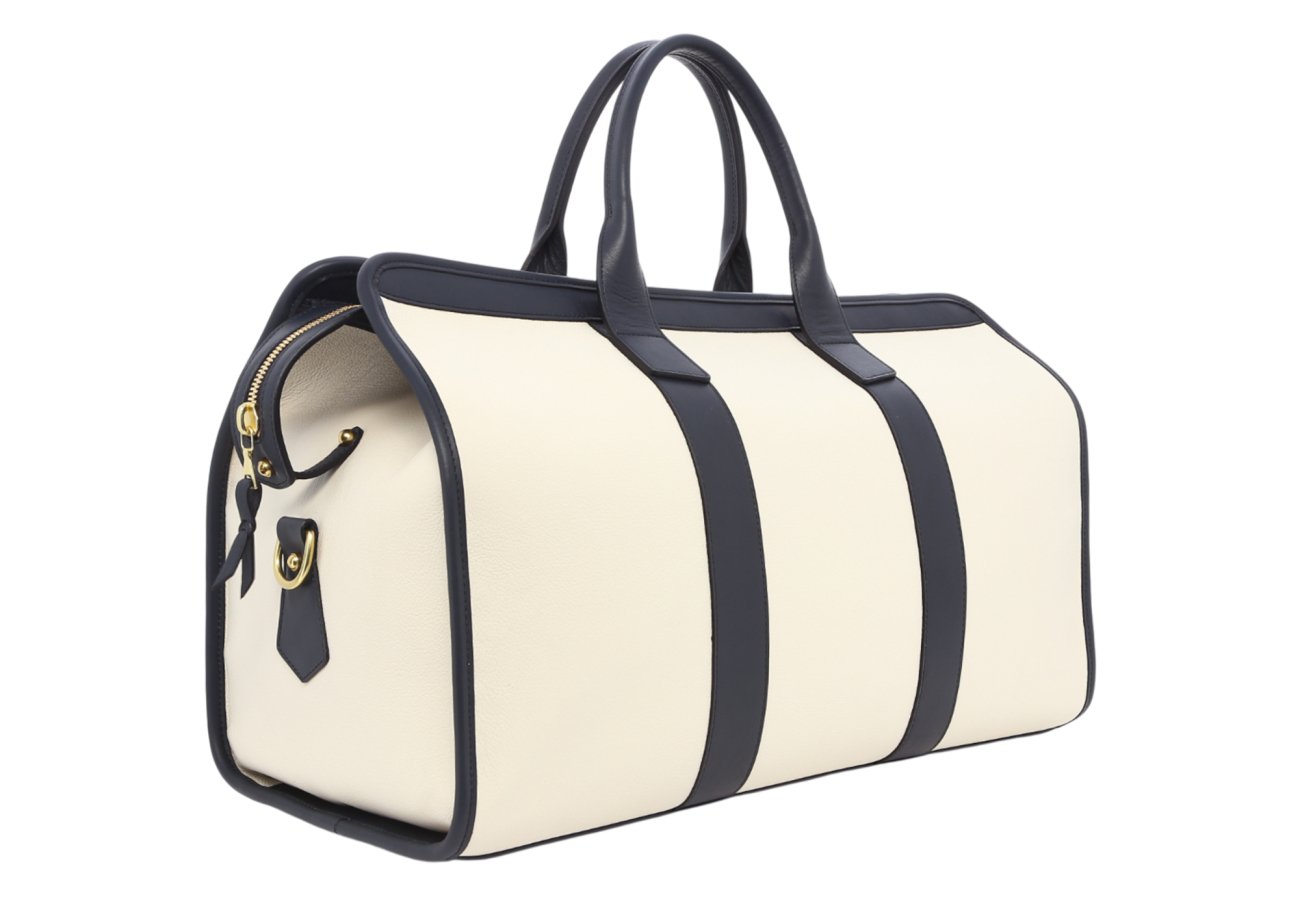 Signature Travel Duffle - White/Navy - Smooth Leather - Charcoal Sunbrella