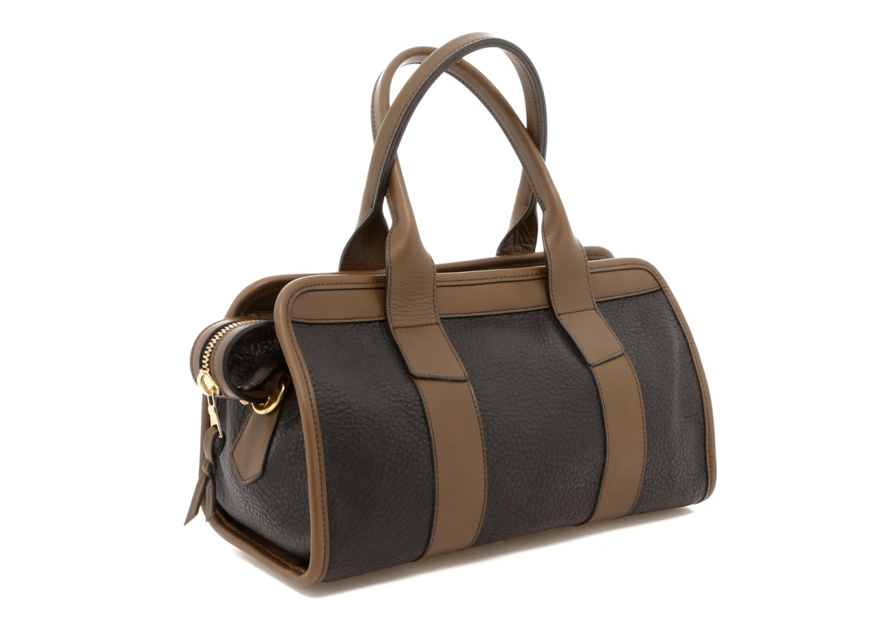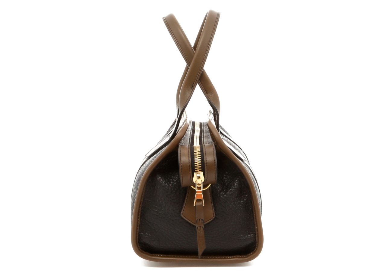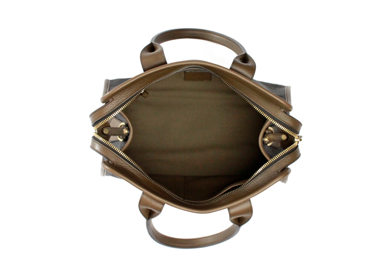 Small Signature Satchel - Black/Olive Trim - Pebble Grain - Olive Interior