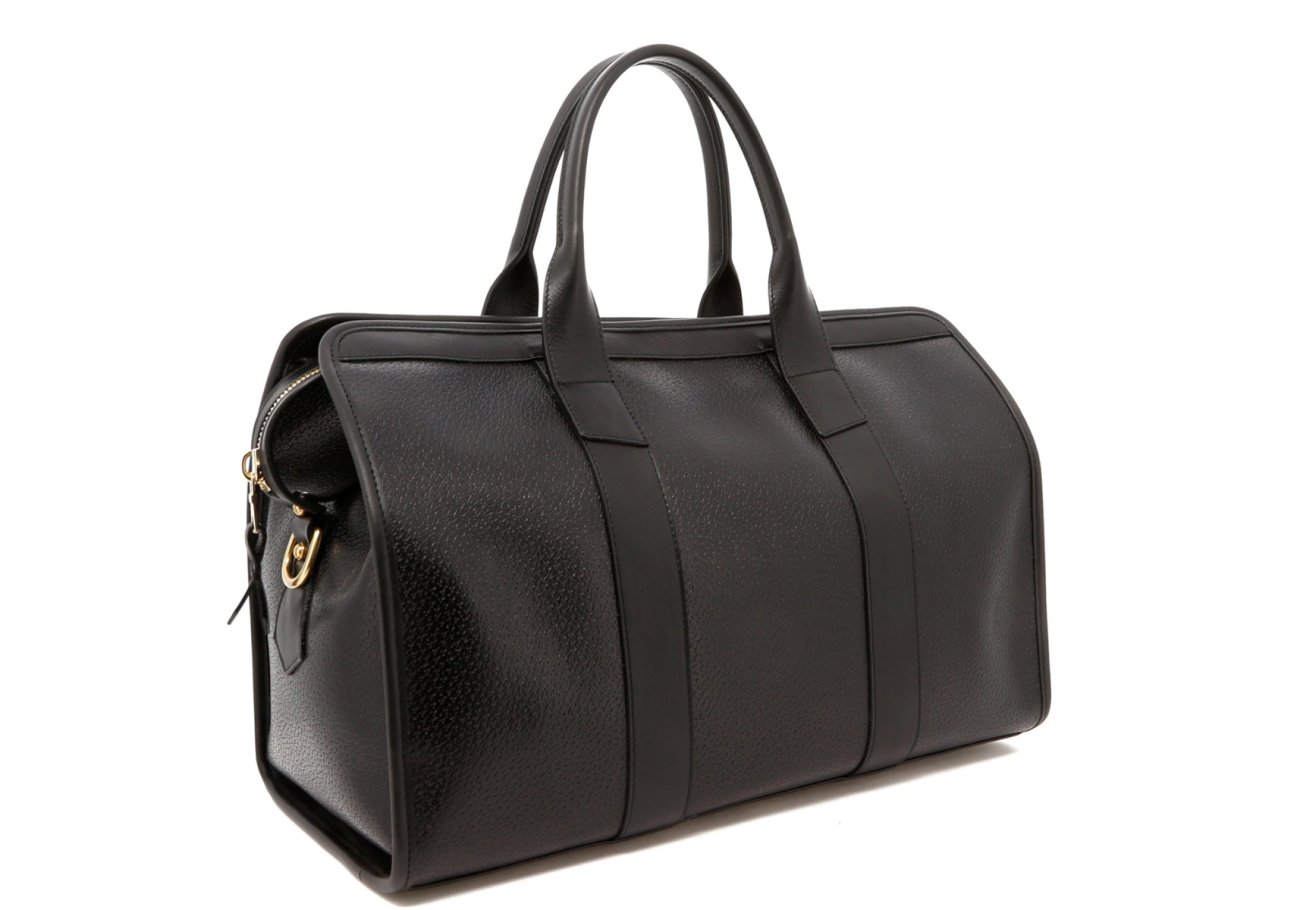 Small Travel Duffle - Black Pigskin Leather - Blue Interior