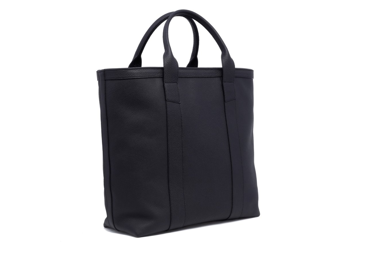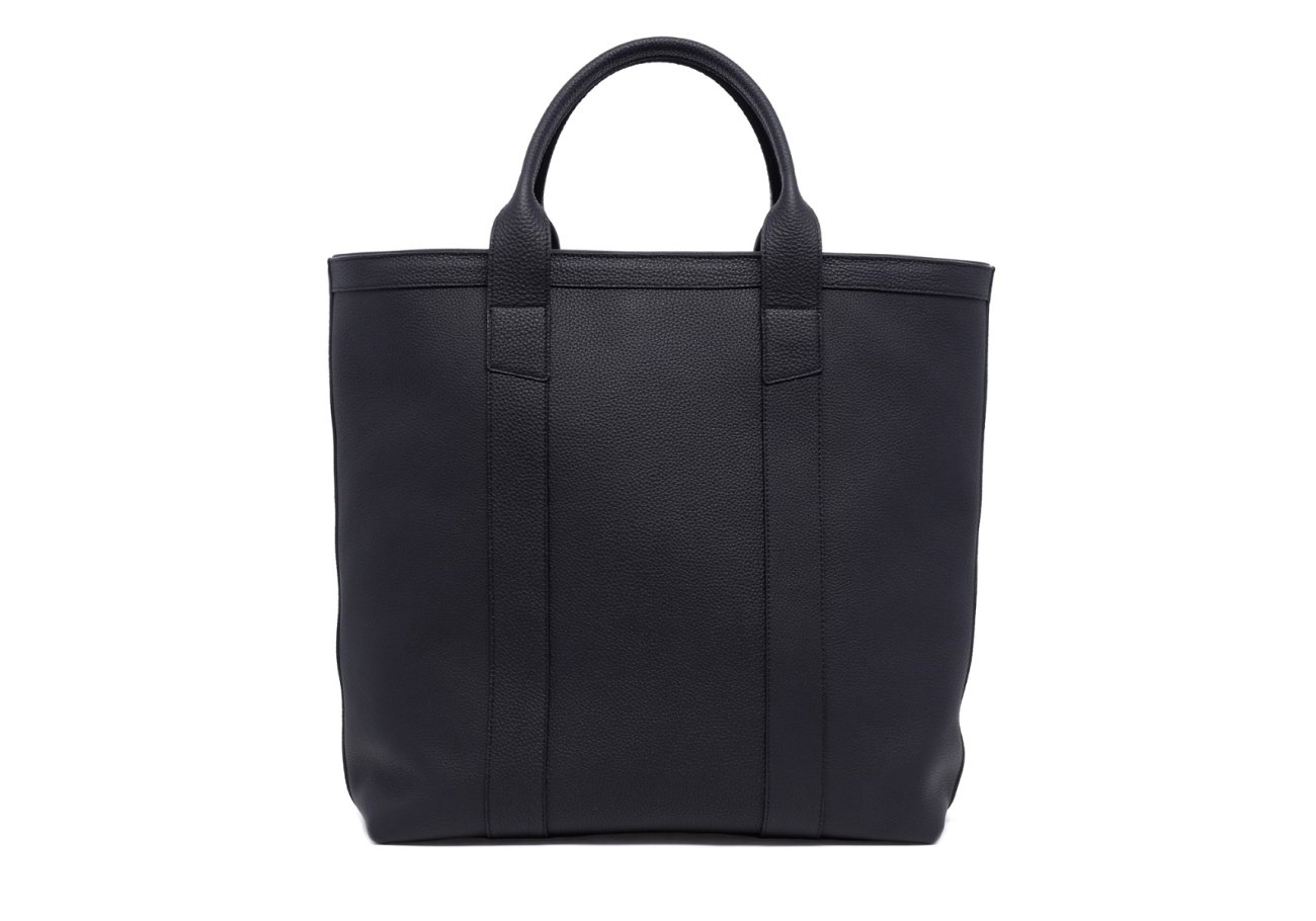 Tall Tote - Black - Zip-Top Closure - Shrunken Grain Calf