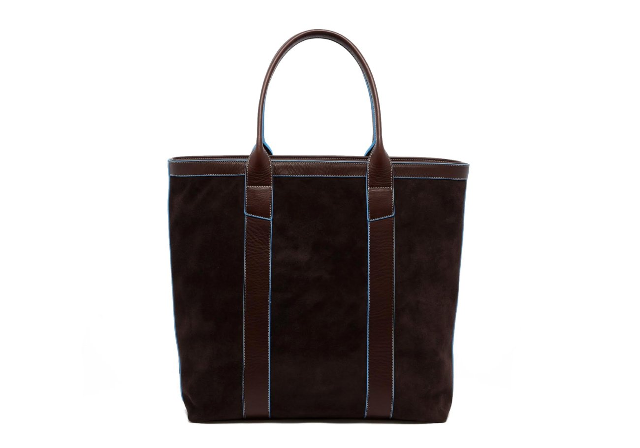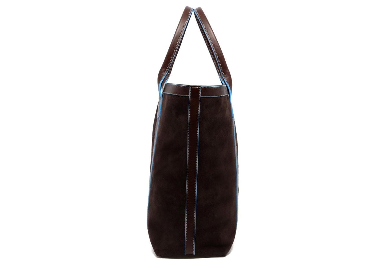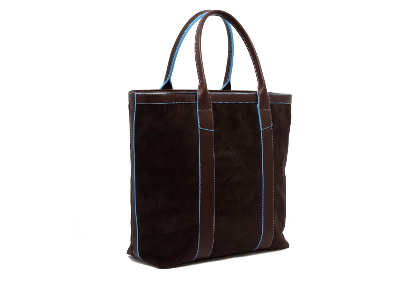 Tall Tote - Chocolate / Baby Blue - Suede - Zipper Top