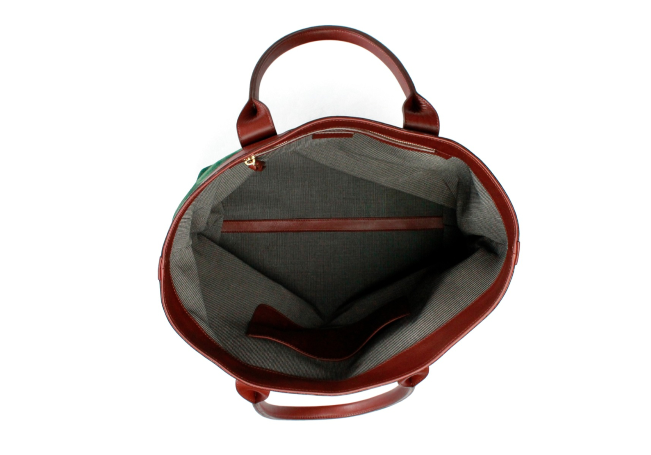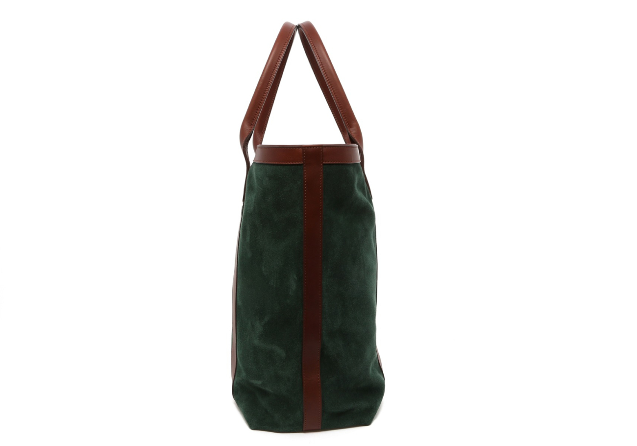 Tall Tote - Evergreen/Chestnut Trim - Suede